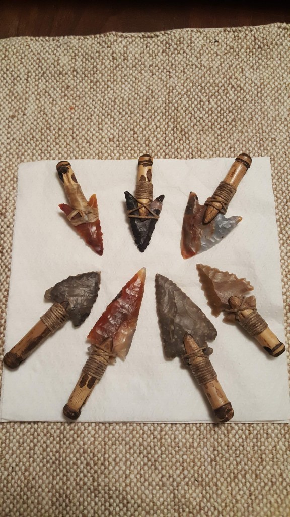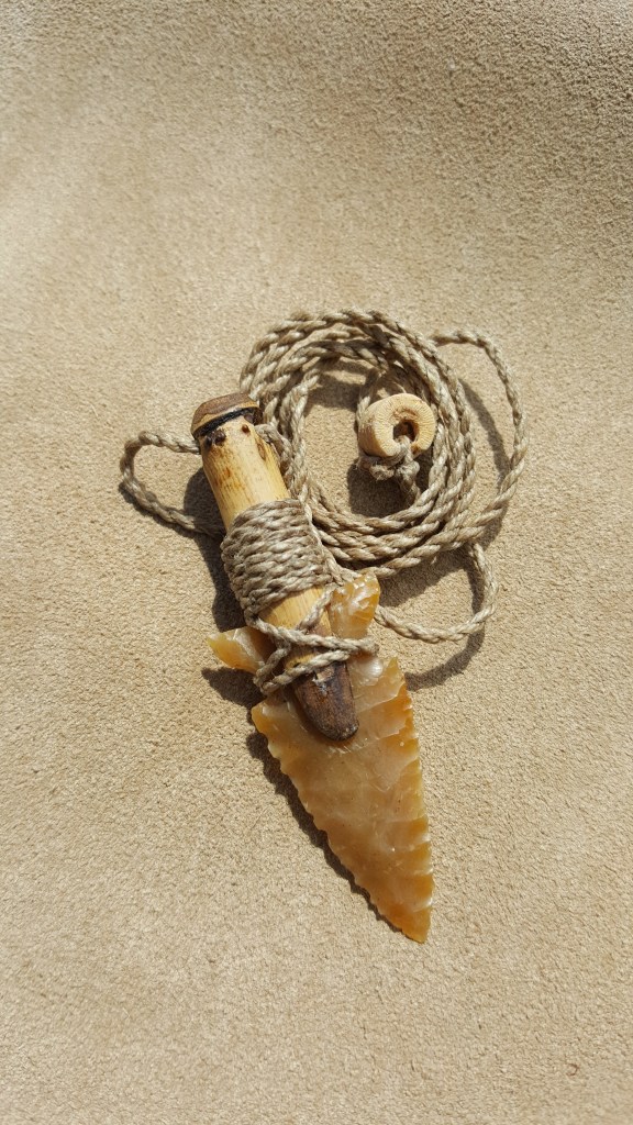 Here are some different arrowhead necklaces I have created. I enjoy incorporating different stones, river cane shafts, and waxed linen cordage which is all crafted by hand.